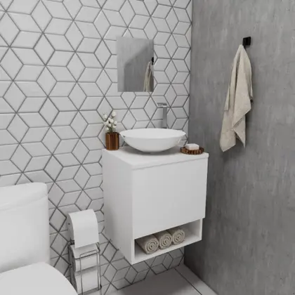 Gabinete de Banheiro 40cm com Cuba e Espelho Completo Lavabo Armário Suspenso