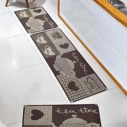 Jogo de Tapete Cozinha Sisal Antiderrapante Marrom Kit 3 Pçs