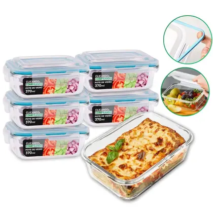 Kit Com 5 Potes Herméticos de Vidro Marmitas Fitness Vasilhas Com Tampa Microondas Freezer 370ml