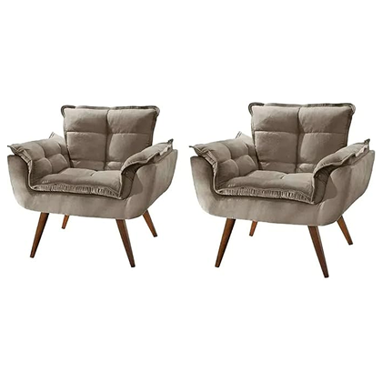 Poltrona Decorativa de Luxo para Sala de Estar Linda Platinum Decor Capuccino